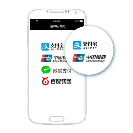 立之云支付,为iOS/Android原生/H5 App提供支付解决方案:支持微信支付、支付宝支付、银联手机支付、百度钱包等。